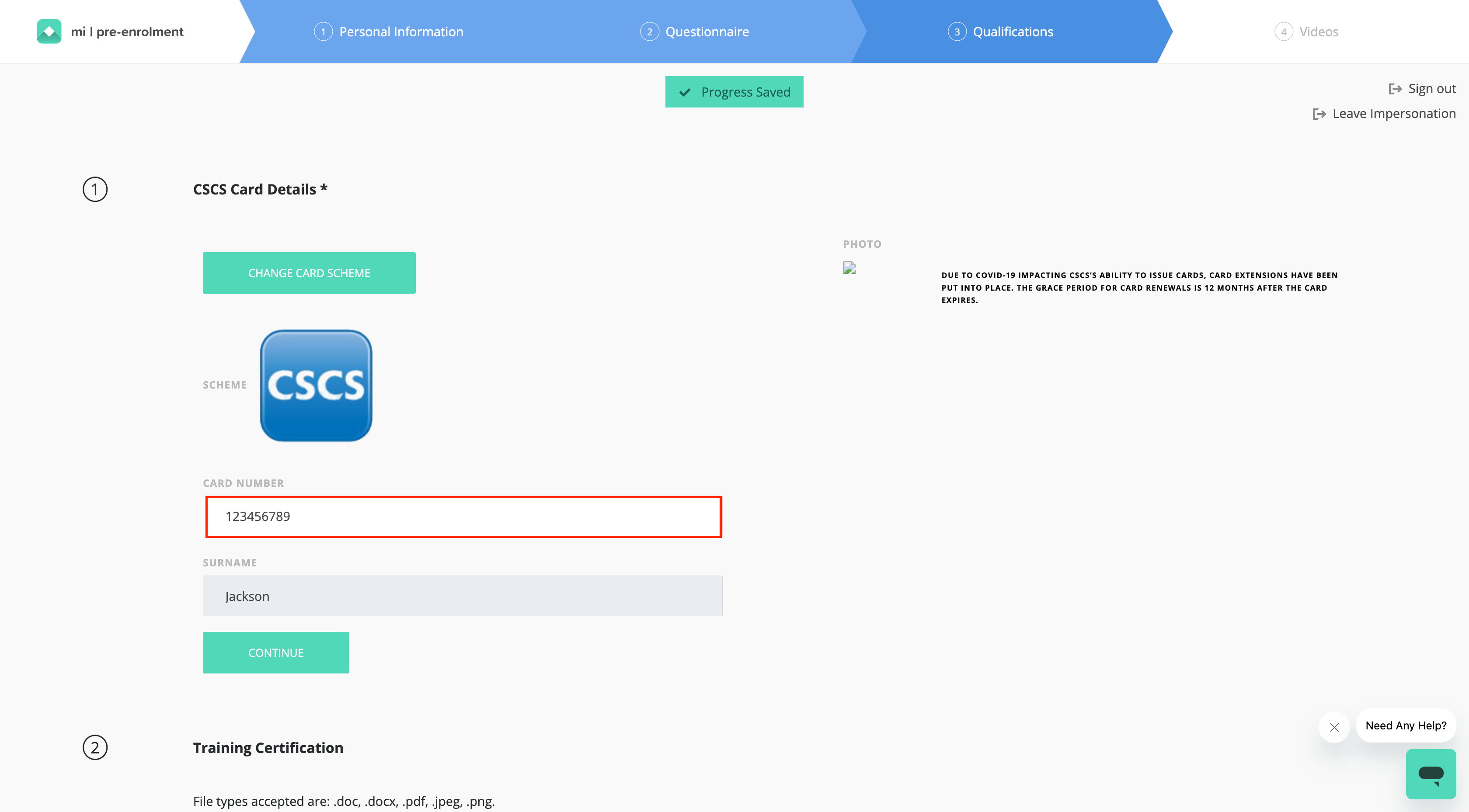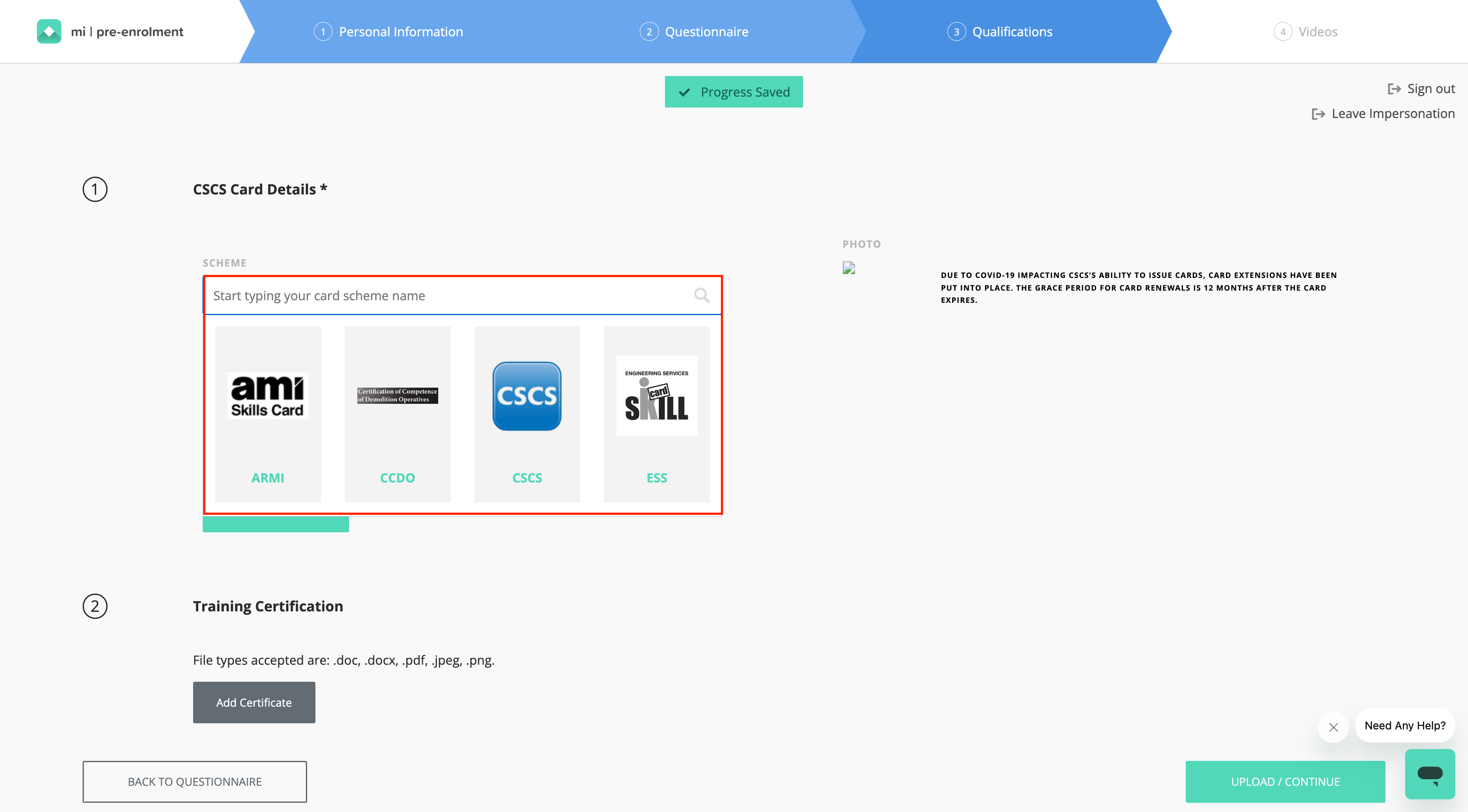 If you initially enrolled via the CITB Route, this is no long valid on Mi Pre-Enrolment and your card will need to be re-uploaded.